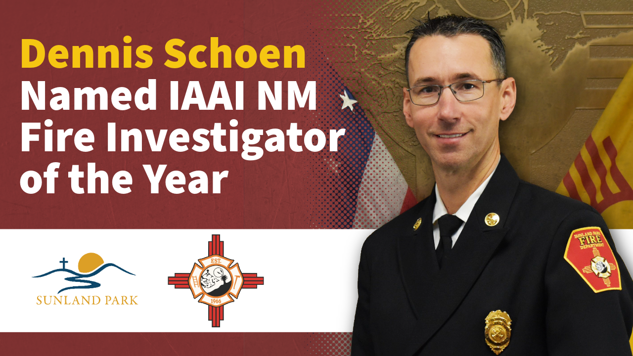 The City of Sunland Park proudly recognizes Fire Marshal Dennis Schoen, who has been awarded IAAI New Mexico Fire Investigator of the Year for his exemplary service in fire prevention,… Continue reading Fire Marshal Dennis Schoen Honored as IAAI New Mexico Fire Investigator of the Year