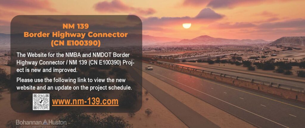 The website for the New Mexico Border Authority (NMBA) and the New Mexico Department of Transportation (NMDOT) Border Highway Connector / NM 139 Project (CN E100390) has been updated.