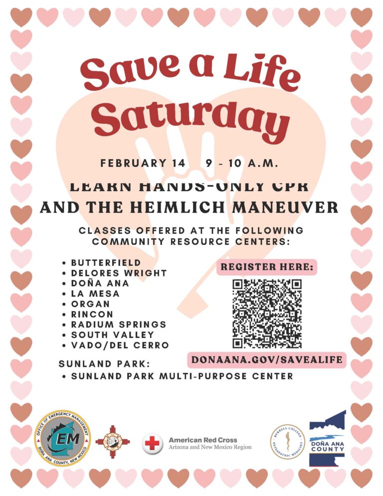 Residents are encouraged to register in advance at donaana.gov/savealife. Space may be limited, and early registration helps ensure adequate materials and instruction are available.