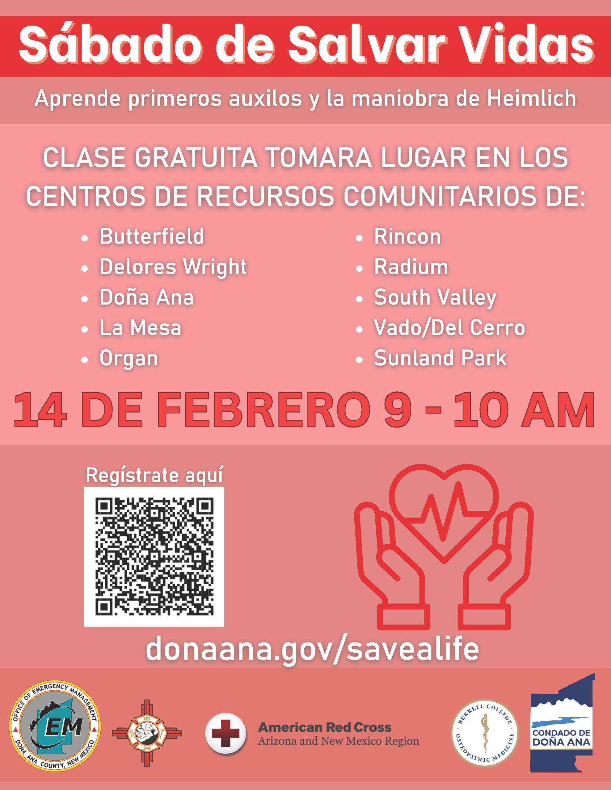 Save a Life Saturday will take place on 02/14, from 9:00–10:00 AM, with free classes offered at Community Resource Centers across Doña Ana County, including Sunland Park. The training is open to the public and does not require prior medical experience.